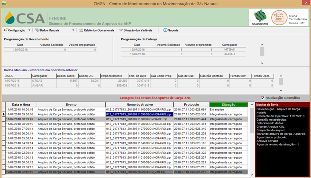 - Controle em tempo real do volume de gás recebido da Bolívia